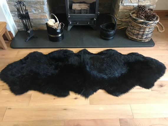 Super Soft Luxury British Black Large Double Sheepskin Rug Etsy