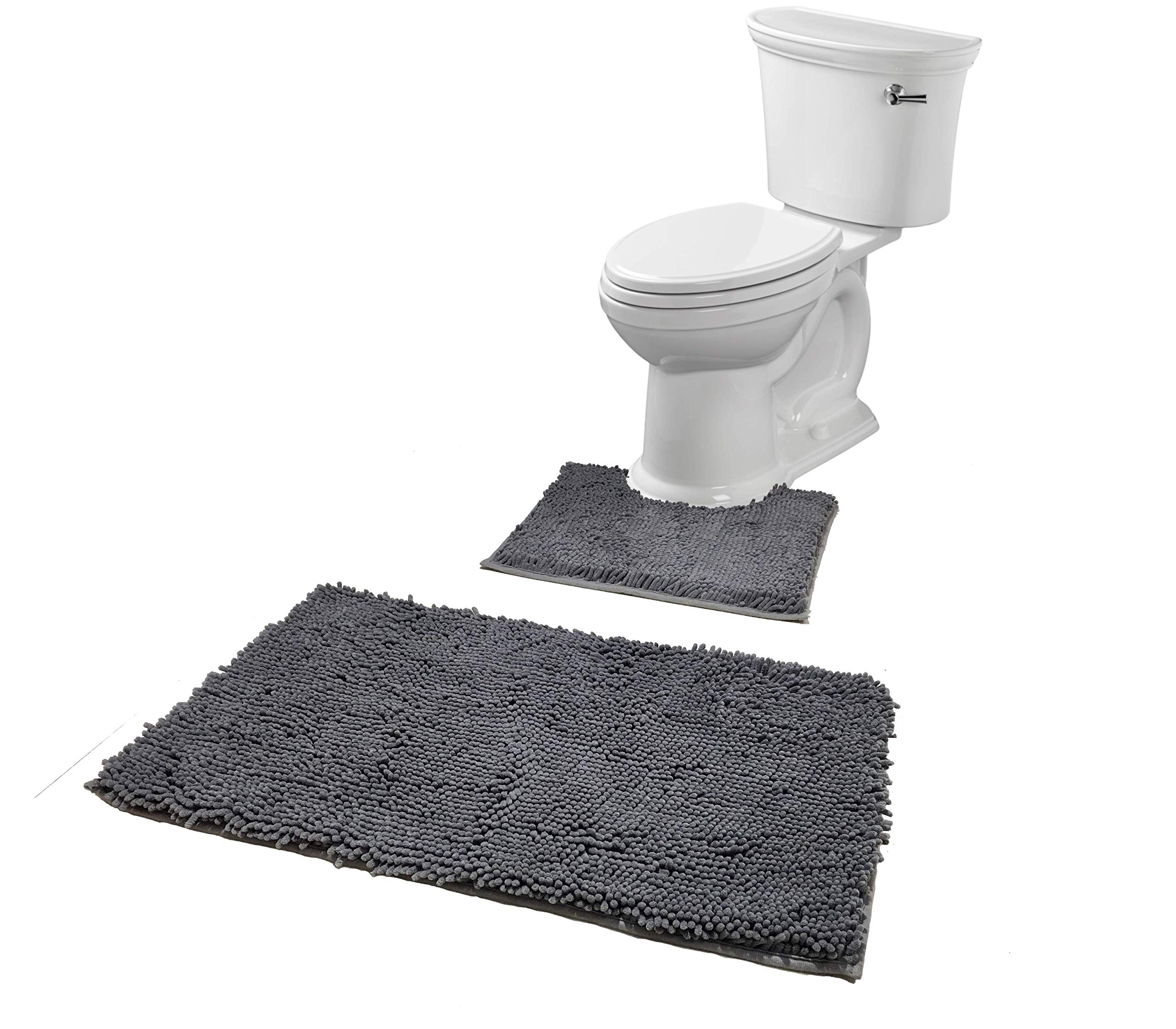 301 Collection Ultra Soft Luxury Rugs 2 Piece Bath Rug Set Chenille Soft Plush Shower Rug U Shape Toilet Mat 1 Inch Microfiber Shaggy Carpet Machine Washable Bath Mat Super Water Absorbent Mats