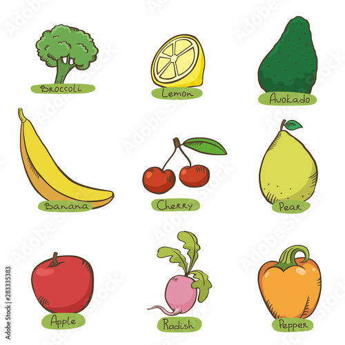 Set Of Fruits And Vegetables Fruit And Vegetable Labels Set Of Vegetarian Stickers Buy This Stock Vector And Explore Similar Vectors At Adobe Stock Adobe Stock