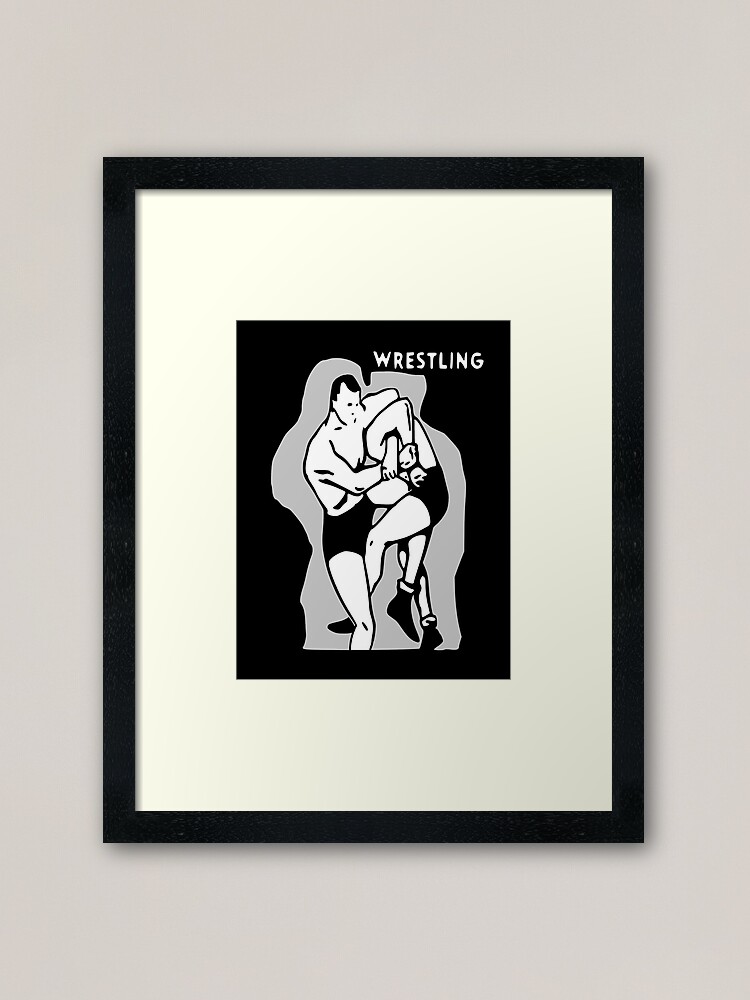 Black And White Vintage Wrestling Vector Graphic Framed Art Print By Paynemountain Redbubble