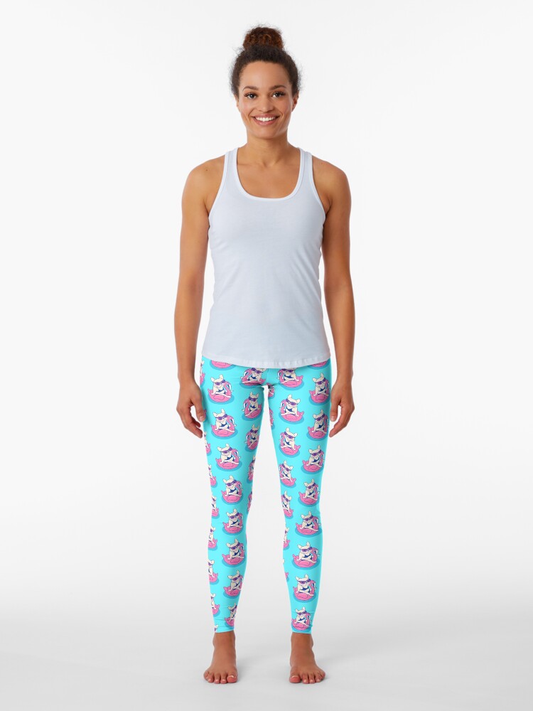 Frenchie Enjoys Summer On Flamingo Pool Float In Swimming Pool Leggings By Cheesim Redbubble