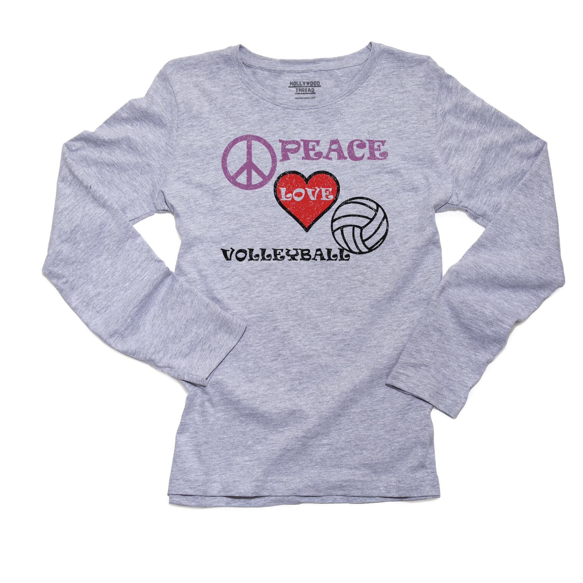 Hollywood Thread Simple Peace Love Volleyball Graphic Design Women S Long Sleeve Grey T Shirt Walmart Com Walmart Com