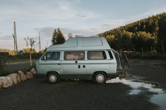 A Vw T3 Bus With Bike Rack On A Country Road Stock Photo Alamy