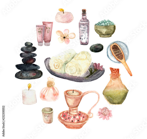 Watercolor Spa Clipart Collection Of Spa And Beauty Products And Elements Isolated On White Background Watercolor Illustrations Stock Photo Alamy