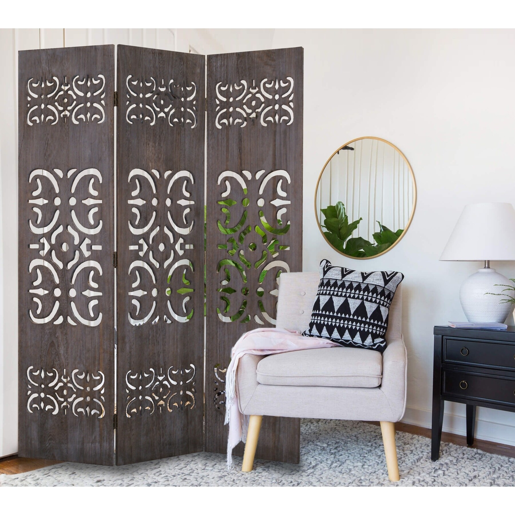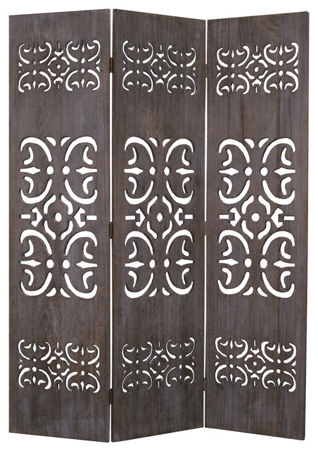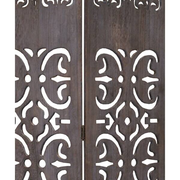 3 Panel Shinto Cut Out Design Foldable Room Divider Brown On Sale Overstock
