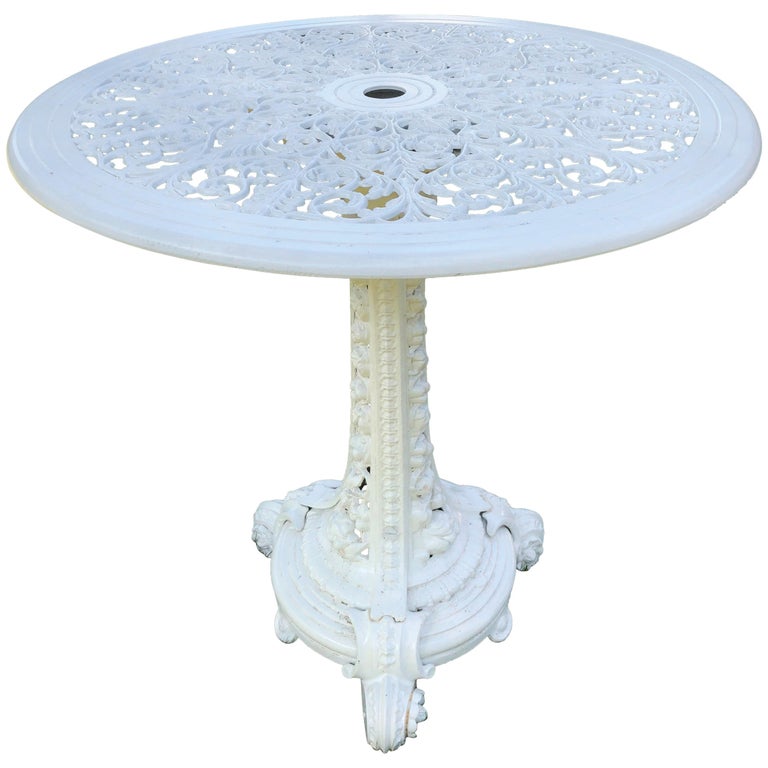 Antique English White Cast Iron Pub Bistro Table Round Patio Table Victorian