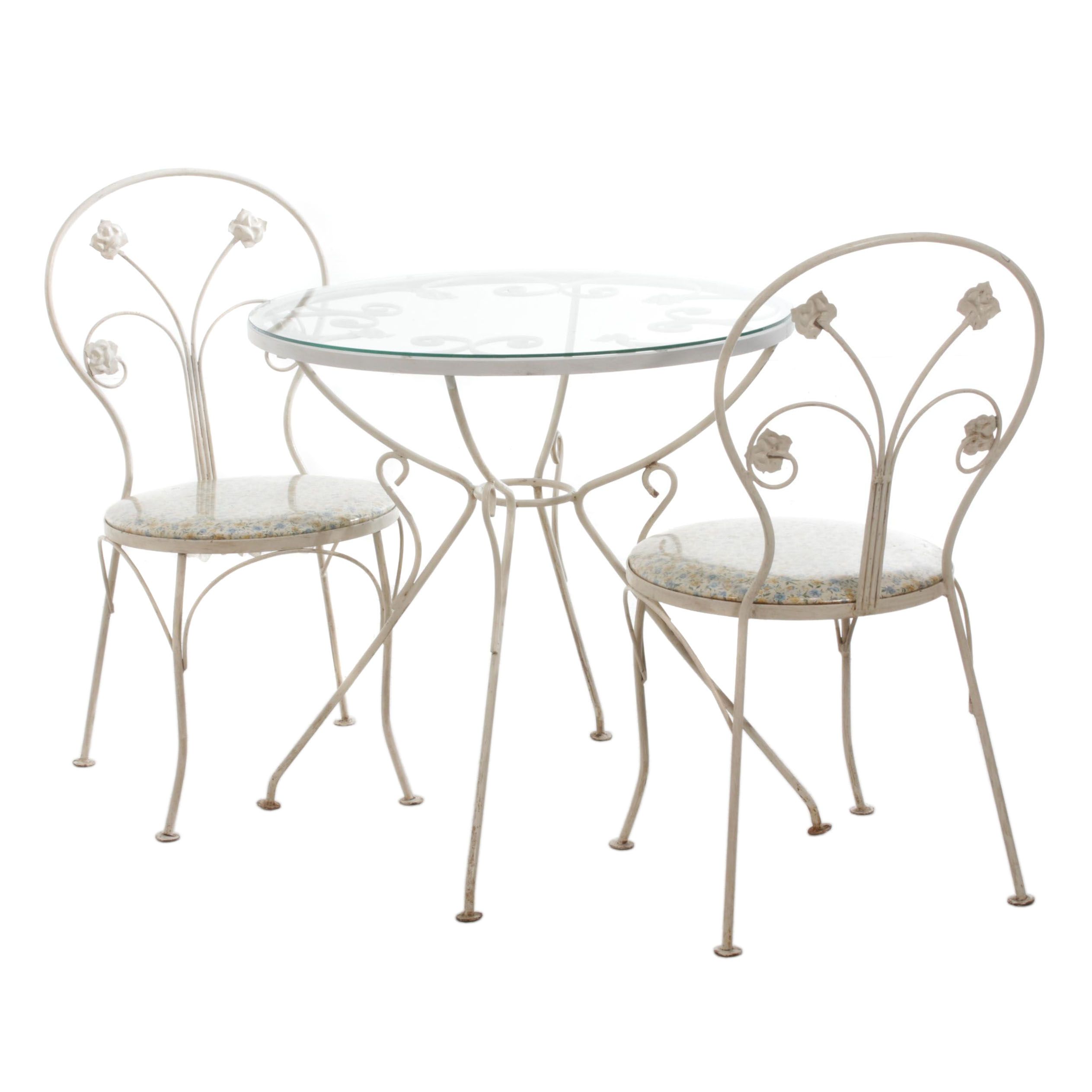 White Cast Iron Table With Glass Top And Chairs Mid To Late th Century Ebth