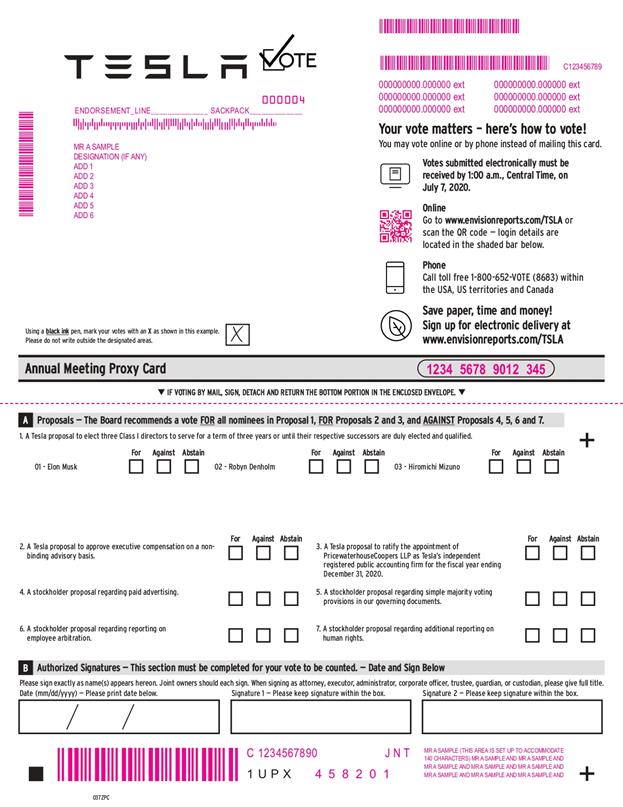 Tesla 19 Proxy Vote Guide Corporate Governance