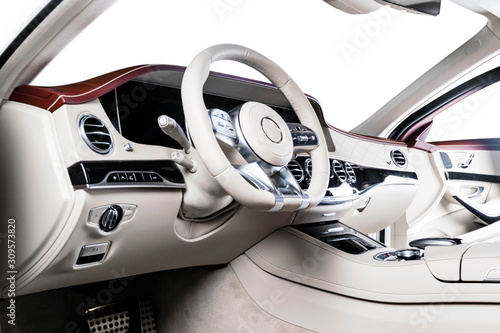 Modern Luxury Car White Leather Interior With Natural Wood Panelmodern Luxury Car White Leather Interior With