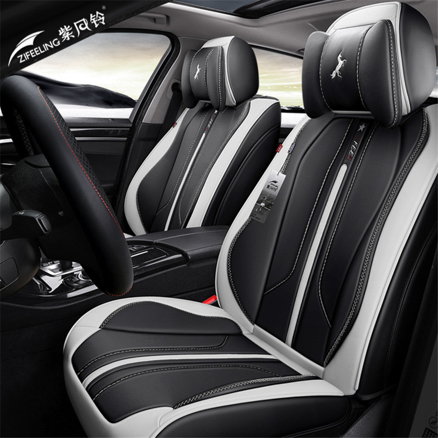 Amazon Com Saienno Custom Wear Resistant Leather Stitching Contrast Car Seat Cushion Covers 5 Seats Full Set Universal Fit Black White Automotive