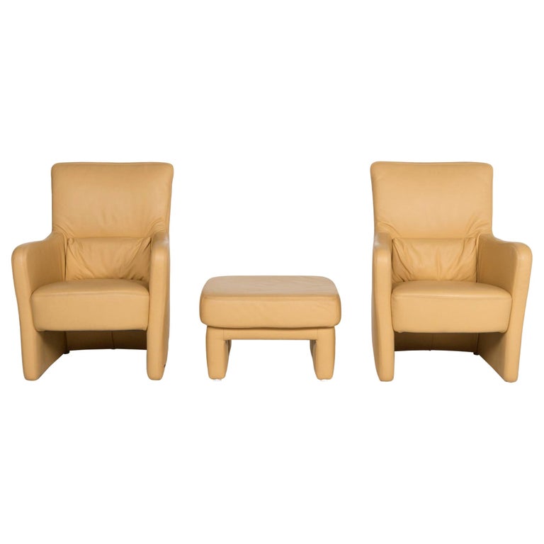 Koinor Leather Armchair Set Yellow 2 Armchair 1 Stool For Sale At 1stdibs