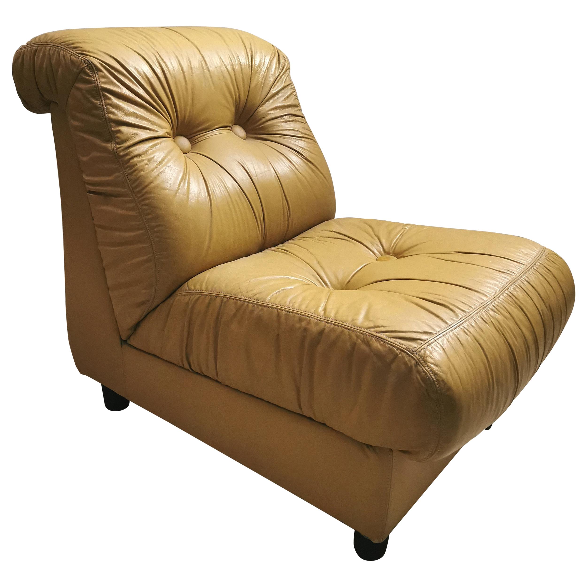 Midcentury Armchair In Yellow Leather With 4 Plastic Feet Italian Design 1960s For Sale At 1stdibs
