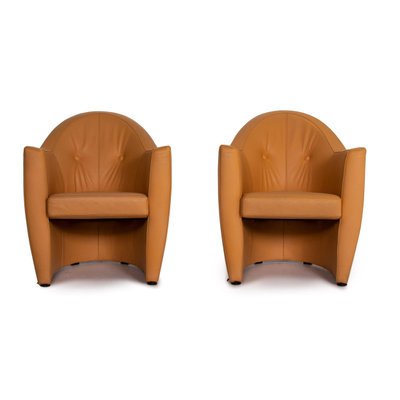 Leather Armchair Set In Yellow Ocher Brown From Leolux Set Of 2 For Sale At Pamono