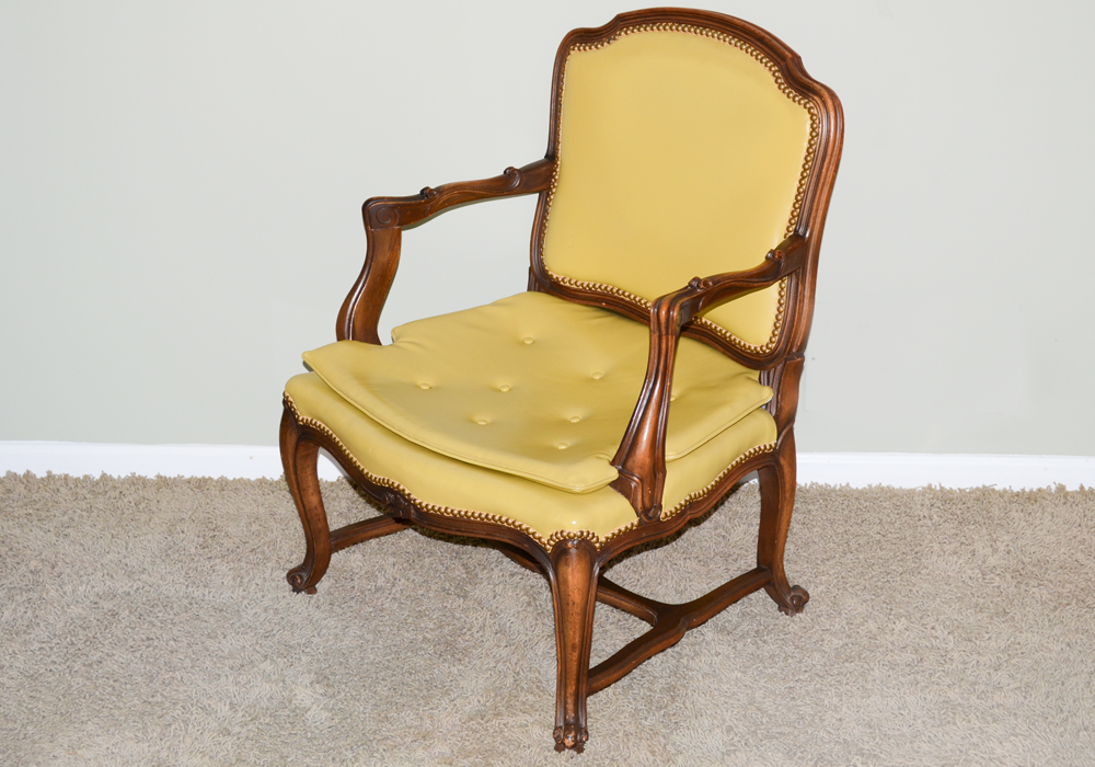 Louis Xv 18th Century French Beechwood Armchair Circa 1750 Recovered In Yellow Leather Wolf Hall Antiques