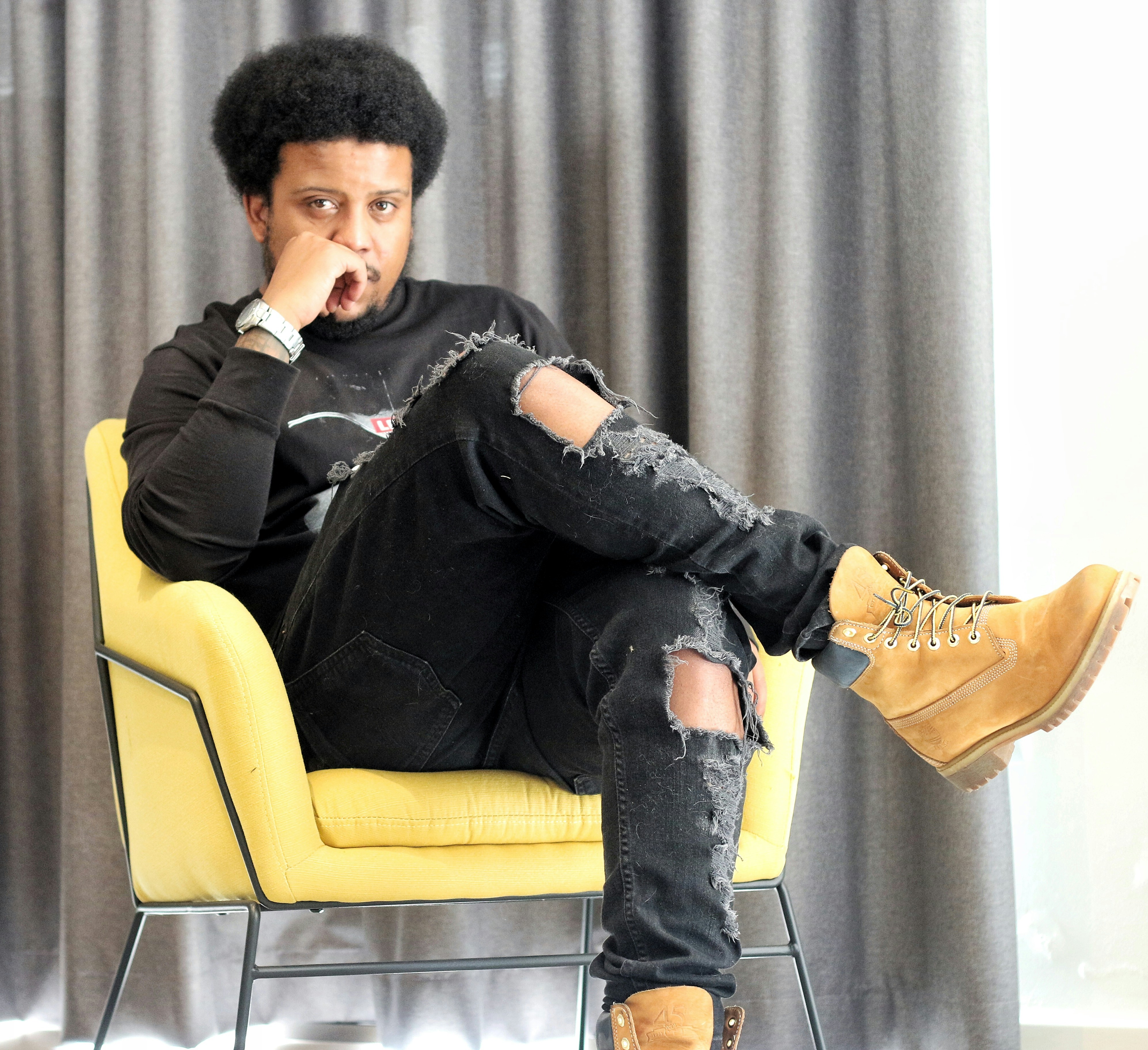 Man In Black Jacket And Blue Denim Jeans Sitting On Yellow Leather Armchair Photo Free Image On Unsplash