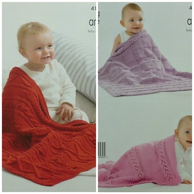 Knitting Pattern Baby Blankets 3 Styles Of Textured Cable Aran Kingcole 4137 Ebay