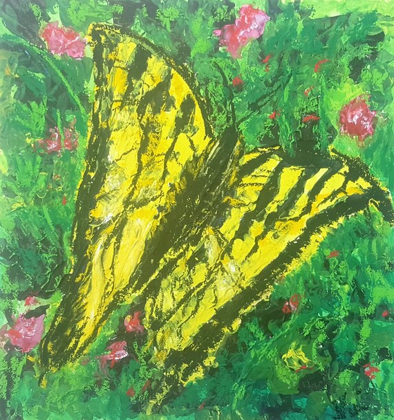 Original Yellow Butterfly Textured Floral Decorative Mixed Etsy