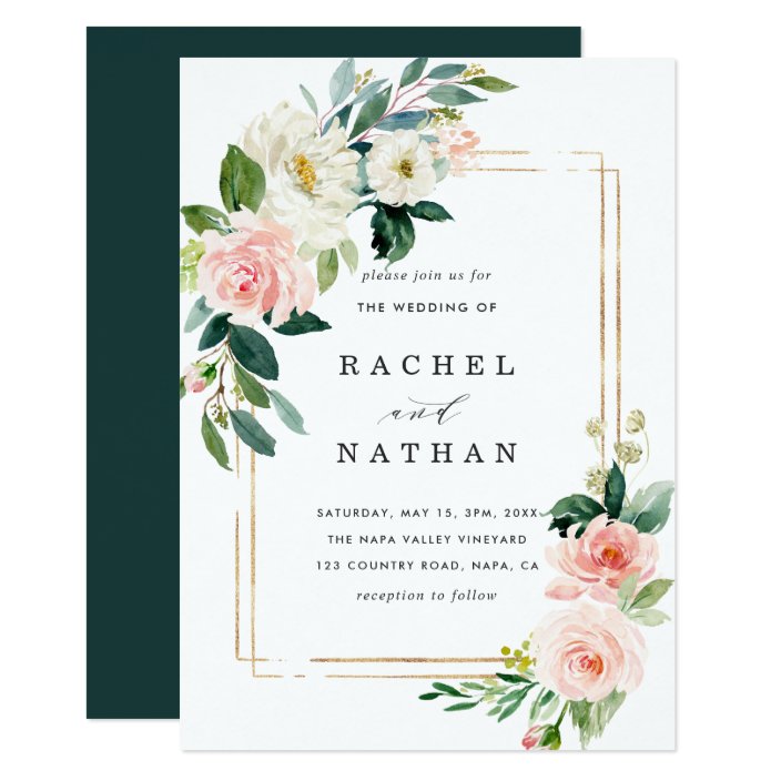 Blush White Bloom Gold Frame Wedding Invitation Zazzle Com