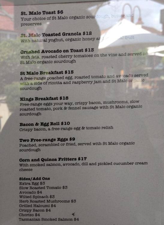 Menu At St Malo Bakery Crows Nest