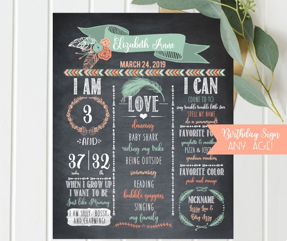 3rd Birthday Chalkboard Sign Coral Wild And Three Girl Etsy
