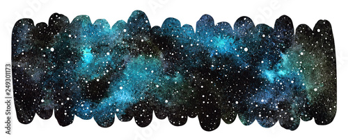 Cosmic Starry Space Watercolor Background Emerald Black Watercolour Galaxy Or Night Sky With Stars Texture Elongated Brush Stroke Shape Rounded Edge Hand Drawn Banner Frame Border Template Buy This Stock Illustration