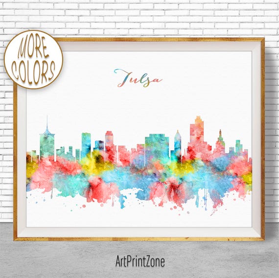 Tulsa Oklahoma Watercolor Skyline Wall Art Home Decor Poster Unframed Ebay