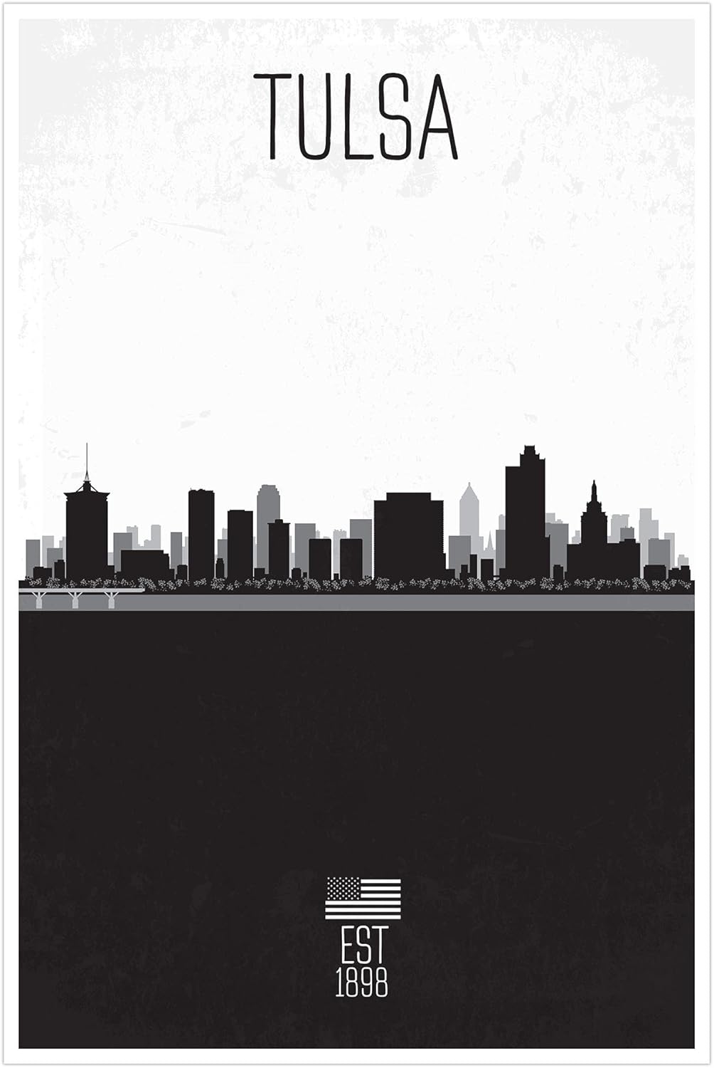 Amazon Com Tulsa Distressed Skyline Art 24x36 Matte Poster Print Wall Art B W Posters Prints
