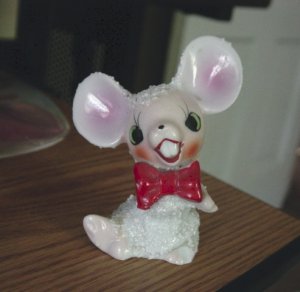 Vintage Hand Painted Buck Tooth White Mouse Figurine
