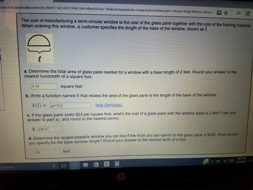 Solved The Cost Of Manufacturing A Semi Circular Window I Chegg Com