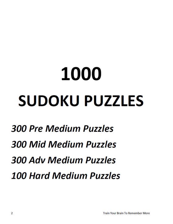 1000 Sudoku Puzzles Level Medium Etsy