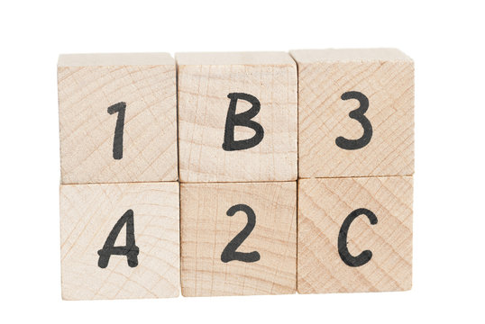 Abc 123 Arranged Using Wooden Blocks Dipiction Of Learning The Abc S White Background Canstock