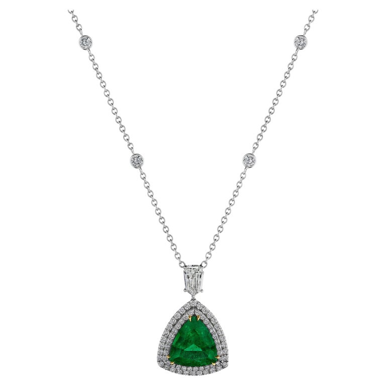 4 75 Carat Trillion Cut Emerald And Diamond Double Halo Pendant Necklace For Sale At 1stdibs