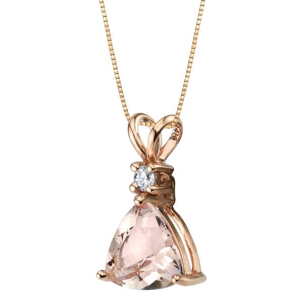 14k Rose Gold Genuine Morganite And Diamond Trillion Cut Pendant 1 75 Carats On Sale Overstock