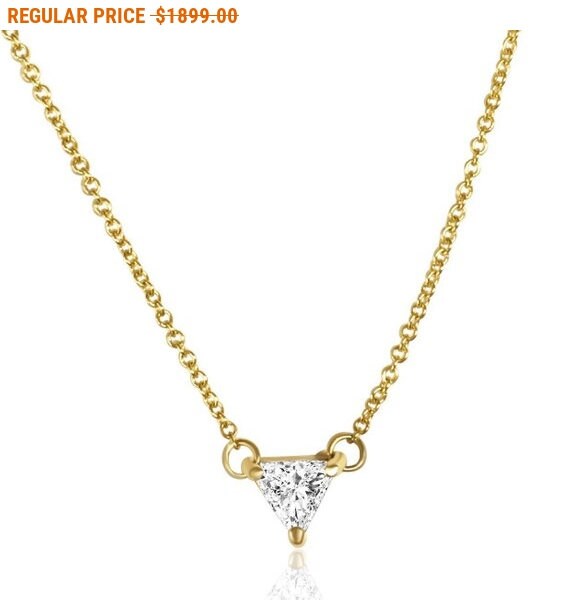 Diamond Necklace Trillion Cut Diamond Solitaire 18k 0 10 To Etsy