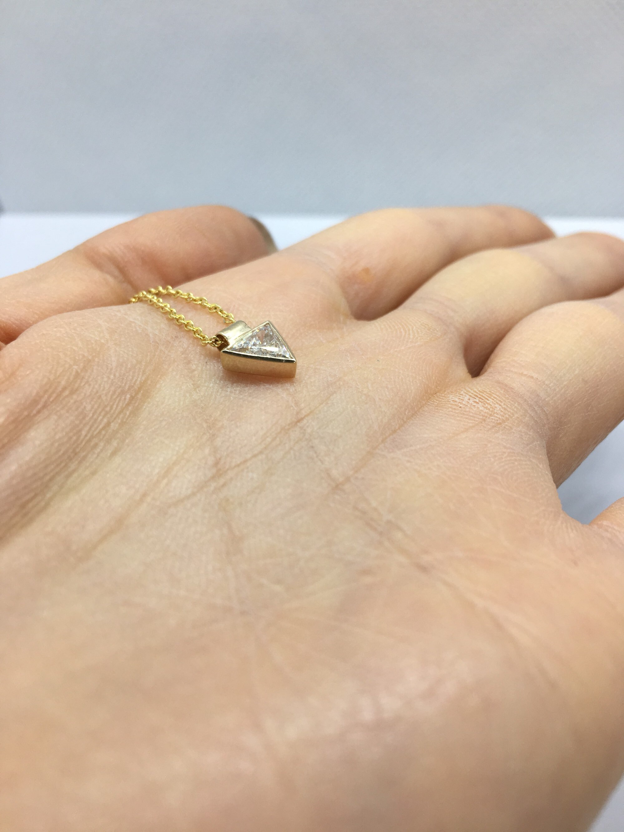0 44 Carat Bezel 14k Yellow Gold Trillion Cut Diamond Necklace Etsy
