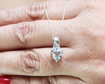 Trillion Cut Aquamarine Birthstone Diamond Pendant In Rose Etsy