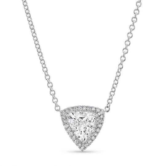 Trillion Cut Diamond Pendant Halo Necklace White Gold