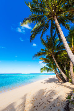 Palm Trees On The Tropical Beach In Sunny Day Vertical Shot Stock Photo Picture And Royalty Free Image Image