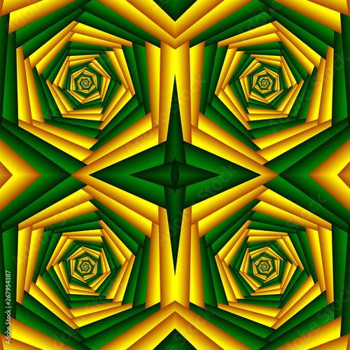 Seamless Swirl Abstract Festive Pattern Yellow Green Tiled Pattern Geometric Mosaic Great For Tapestry Carpet Blanket Bedspread Fabric Ceramic Tiles Stained Glass Window Wallpapers Buy This Stock Illustration And Explore Similar