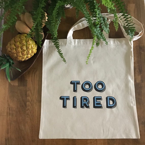 Too Tired Word Tote Canvas Shopper Bag Design Tote Etsy
