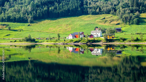 Traditional Norwegian Summer Farm Along Lake Vangsvatnet Reflected In The Water Near Voss Hordaland County Norway Buy This Stock Photo And Explore Similar Images At Adobe Stock Adobe Stock