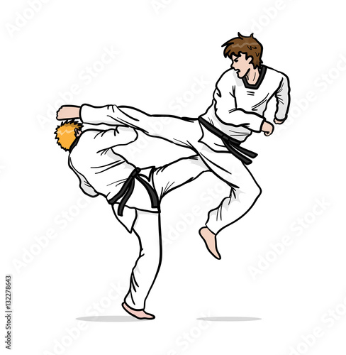 Taekwondo Fight A Hand Drawn Vector Cartoon Illustration Of 2 Guys Fighting Buy This Stock Vector And Explore Similar Vectors At Adobe Stock Adobe Stock