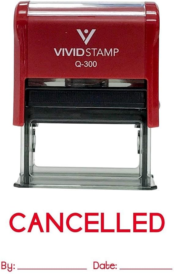 Amazon Com Cancelled By Date Self Inking Rubber Stamp Red Ink Large Kitchen Dining