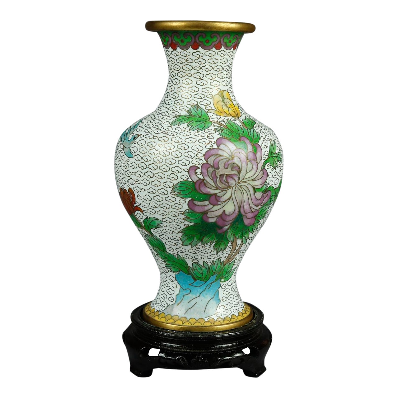 1930s Vintage Chinese Cloisonne Floral Garden Enameled Brass Vase Chairish