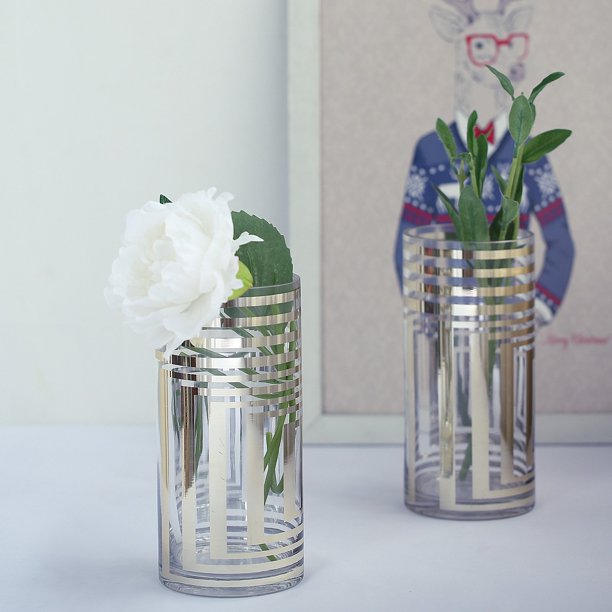 Efavormart 2 Pack Gold Striped Cylinder Vases Glass Vases Flower Centerpieces Walmart Com Walmart Com