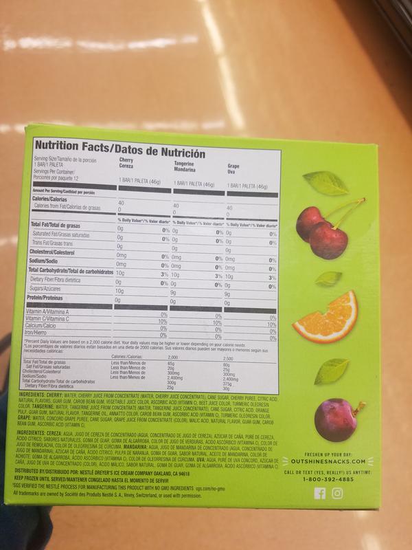 Outshine Fruit Bars Tangerine Calories Nutrition Analysis More Fooducate