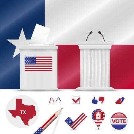Presidential Elections In Texas Vector Waving Flag Realistic Ballot Box Public Speaker S Podium Silhouette Map And Voting Icon Set Royalty Free Vector Graphics