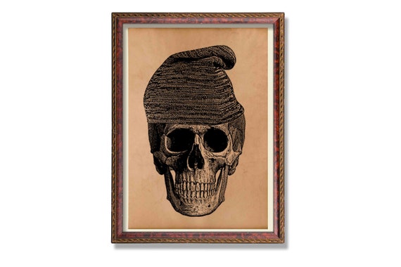 Old Skull With Beanie Anatomy Poster Medical Print Anatomical Etsy