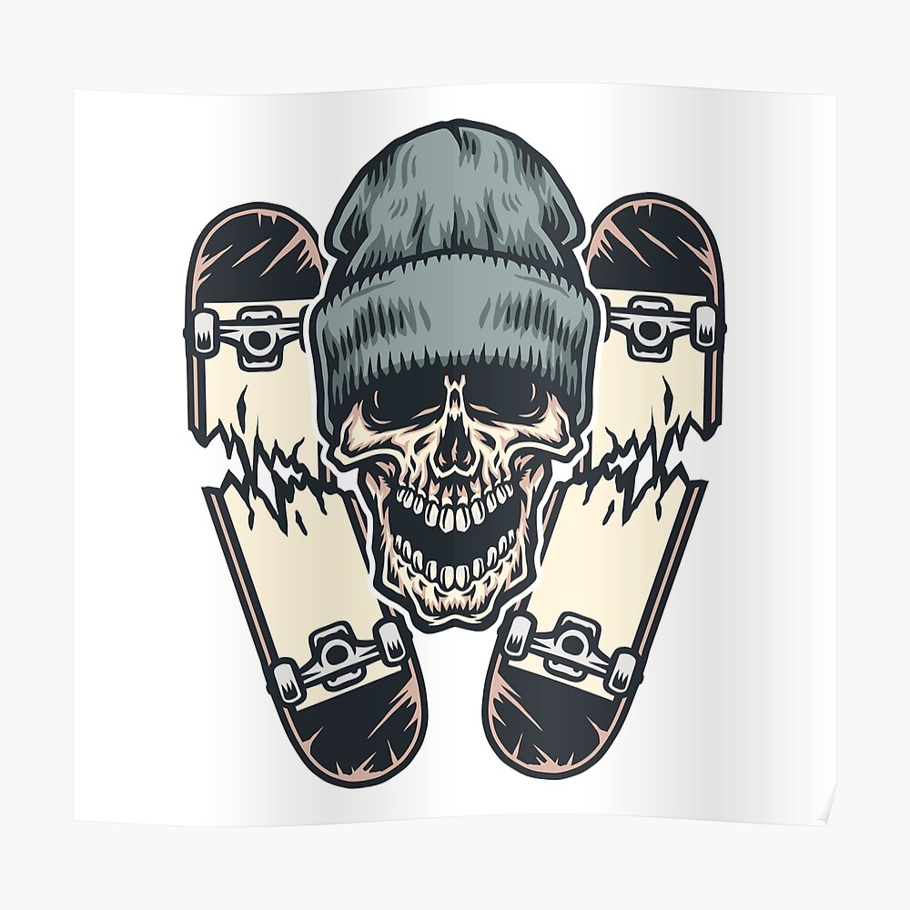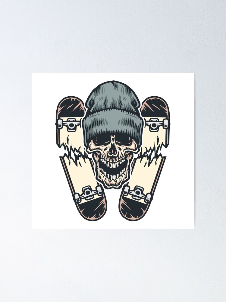 Skull With Beanie Cap And Broken Skateboard Poster By Renju1902 Redbubble