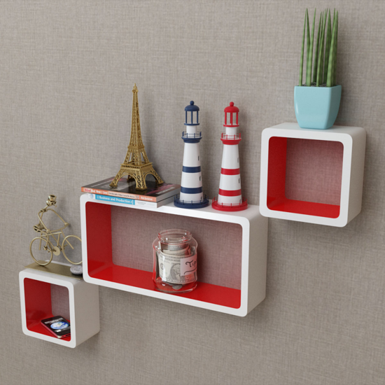 Onlinegymshop Living Room Floating Wall Display Cubes Shelves 3 Pcs White With Red